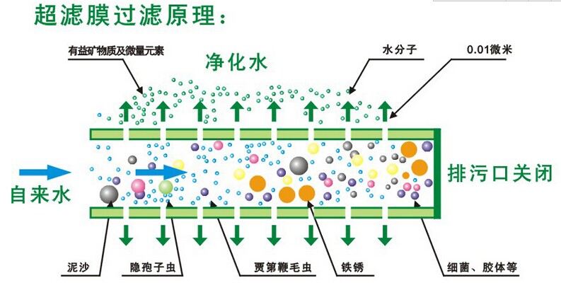 超濾凈水器的核心是超濾膜,過濾精度為0.01微米,比陶瓷濾芯的孔徑縮小了十倍,可以濾除所有不溶于水的物質,包括鐵銹、泥沙、水藻、各種顆粒物等。目前在長江以南地區(qū),超濾凈水器的應用比較普遍。但超濾凈水器有一個硬傷,就是無法去除水中的水垢,這就給反滲透凈水機留下了空間。