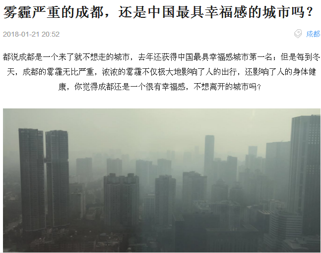 霧霾嚴重的成都,還是中國最具幸福感的城市嗎