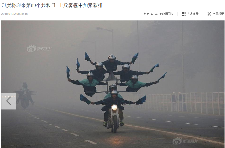 霧霾豈止是中國有,世界其他地方更是不遑多讓。印度將迎來第69個共和日,士兵霧霾中加緊彩排,當然,三哥一直都是搞笑擔當。