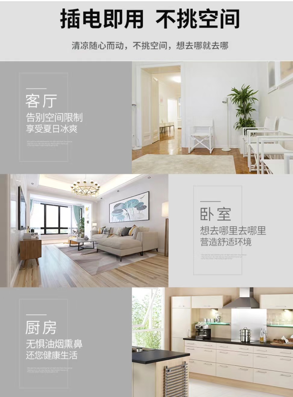 高效能、低噪音,無(wú)需安裝,可隨意放置,空調(diào)隨心所移,局部降溫比普通的空調(diào)要快,節(jié)能健康,不用擔(dān)心患空調(diào)病。移動(dòng)空調(diào)就像風(fēng)扇一樣方便。