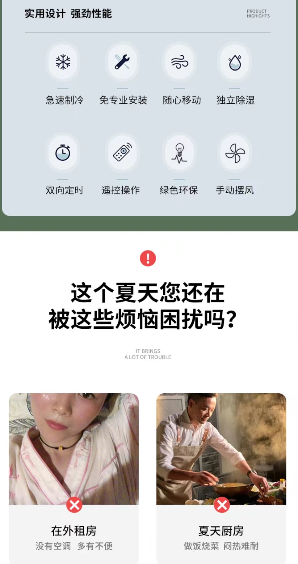 - 壓縮機(jī)急速降溫 智能恒溫 省電可移動(dòng)小空調(diào)