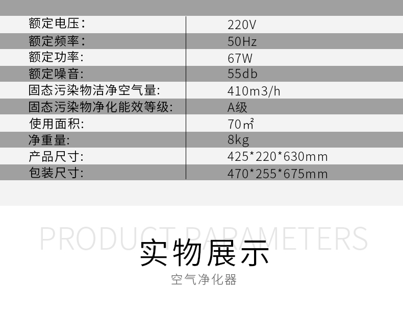 - 產(chǎn)品簡介:家用紫外線殺菌大風(fēng)量空氣凈化器,八級過濾,高效去除霧霾、甲醛、大顆粒、細(xì)菌、二手煙、異味等空氣污染物,同時(shí)配備紫外線殺菌,功能強(qiáng)大。